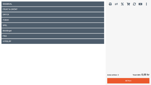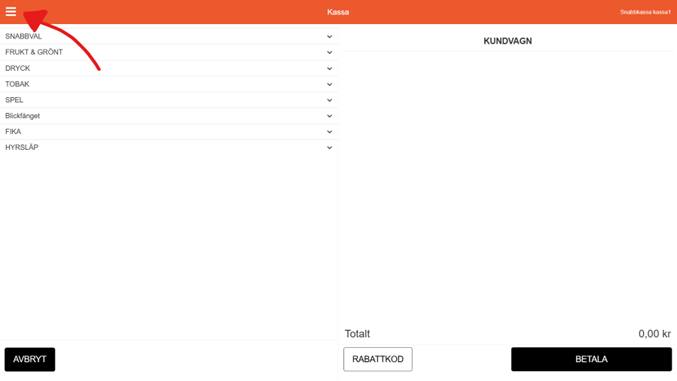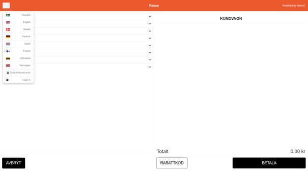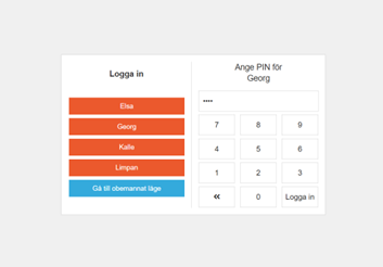 Välj kassör och logga in med pinkod. Här hittar du en guide hur du skapar kassörer.