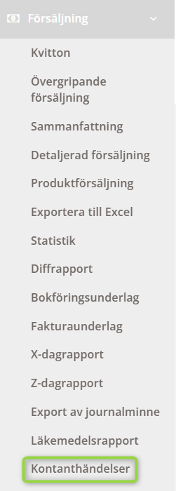 Under Försäljning finns en funktion som heter Kontanthändelser.